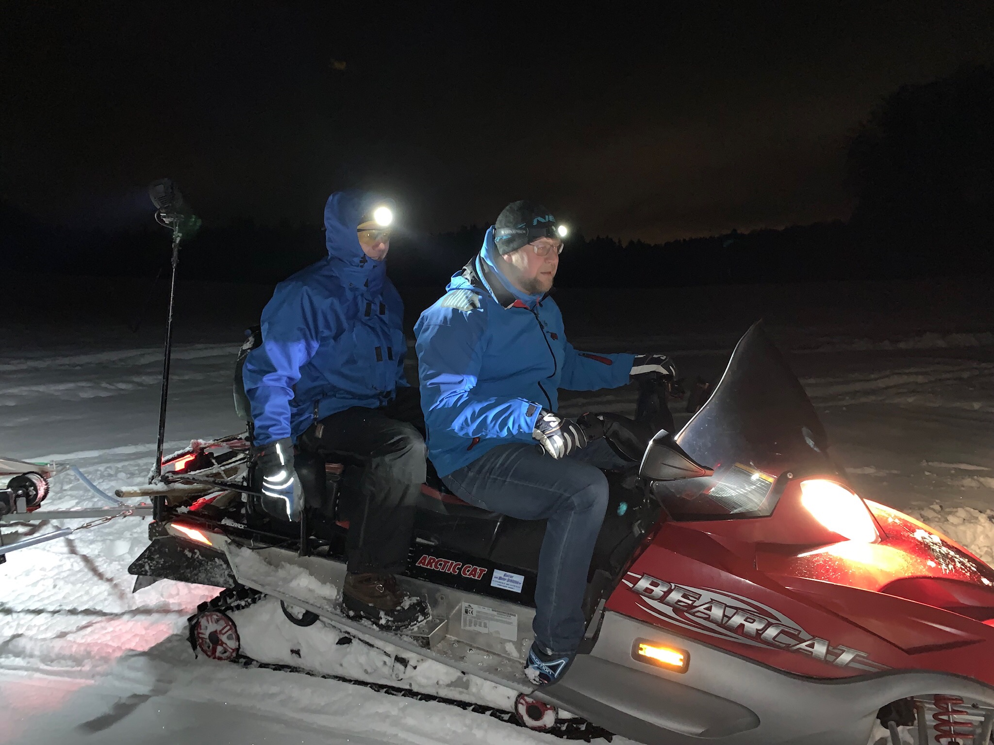 Der Ritchie kam dann mit Winden, Ratschen und Seilen rauf… nochmal rausfahren, zu zweit Bergung starten. Uns war klar, dass, wenn uns der Spurer im Wasser einfriert, es bis April dauern wird, ihn zu bergen…